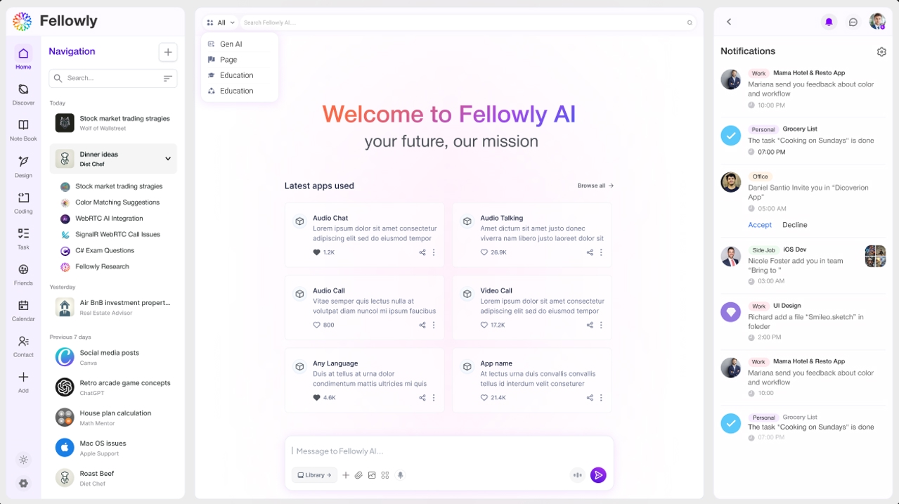 Fellowly is a comprehensive AI-driven assistant platform designed to make managing your digital life effortless. It helps users perform tasks efficiently, from changing passwords and updating themes to creating and organizing posts, contacts, notes, and passwords. With AI intent-based guidance, Fellowly ensures that every action is optimized for productivity and convenience. Key features include: