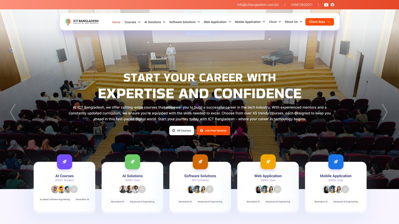 ICT Bangladesh is dedicated to transforming Bangladesh into a digitally skilled nation. The organization provides technical training, workshops, and hands-on learning experiences to help people enhance their digital knowledge and apply it practically. Its goal is to empower individuals to navigate the modern digital world confidently and efficiently. Key highlights include: